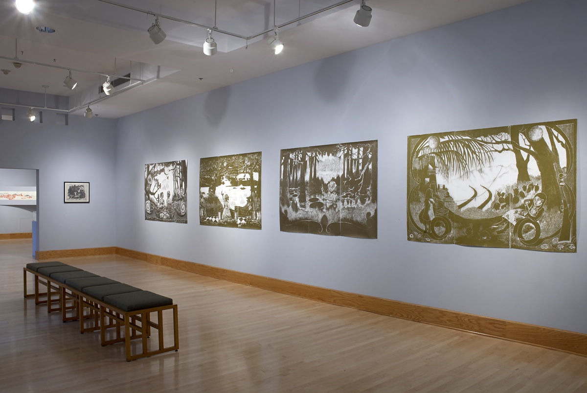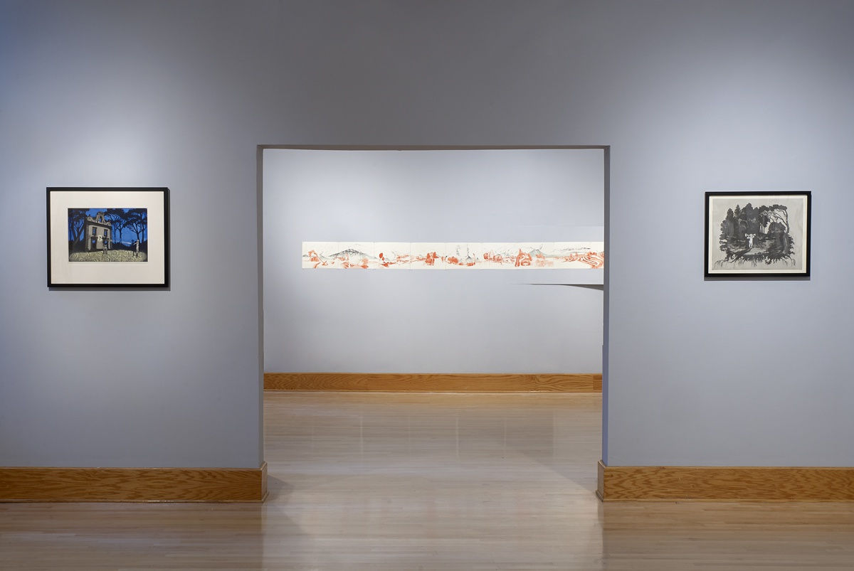 Other works on view include two mixed media print portfolios inspired by the life and death of Craig Arnold, a celebrated poet whose obsession with exploring volcanoes led to his disappearance and presumed death in 2009 on the island of Kuchinoerabujima, Japan.  Recognizing her own cultural dislocation, wanderlust, and desire to reconcile the sublime and the familiar, Perrone created A Volcano Pilgrim in Exchange for Fire (2010), a series of twenty prints housed in a handmade portfolio.  A companion series, Maintaining a Safe Distance and Living to Tell (2012), will be displayed on a curved wall in the List Gallery's rear room, allowing for a continuous 26-foot panorama.  Such narrative works invite viewers to explore changing pathways, both external and internal, and corresponding changes in attitudes of inquiry, detachment, perception, wonder, and reflection.